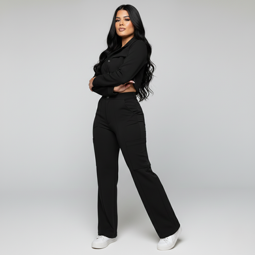 Este conjunto de duas peças é a definição de exclusividade, resultado de uma curadoria de importação rigorosa. Não é apenas uma roupa, é um statement de moda. A qualidade do tecido em Poliéster garante uma peça de toque suave e durabilidade que resiste ao uso contínuo, mantendo sua forma e cor vibrante.
