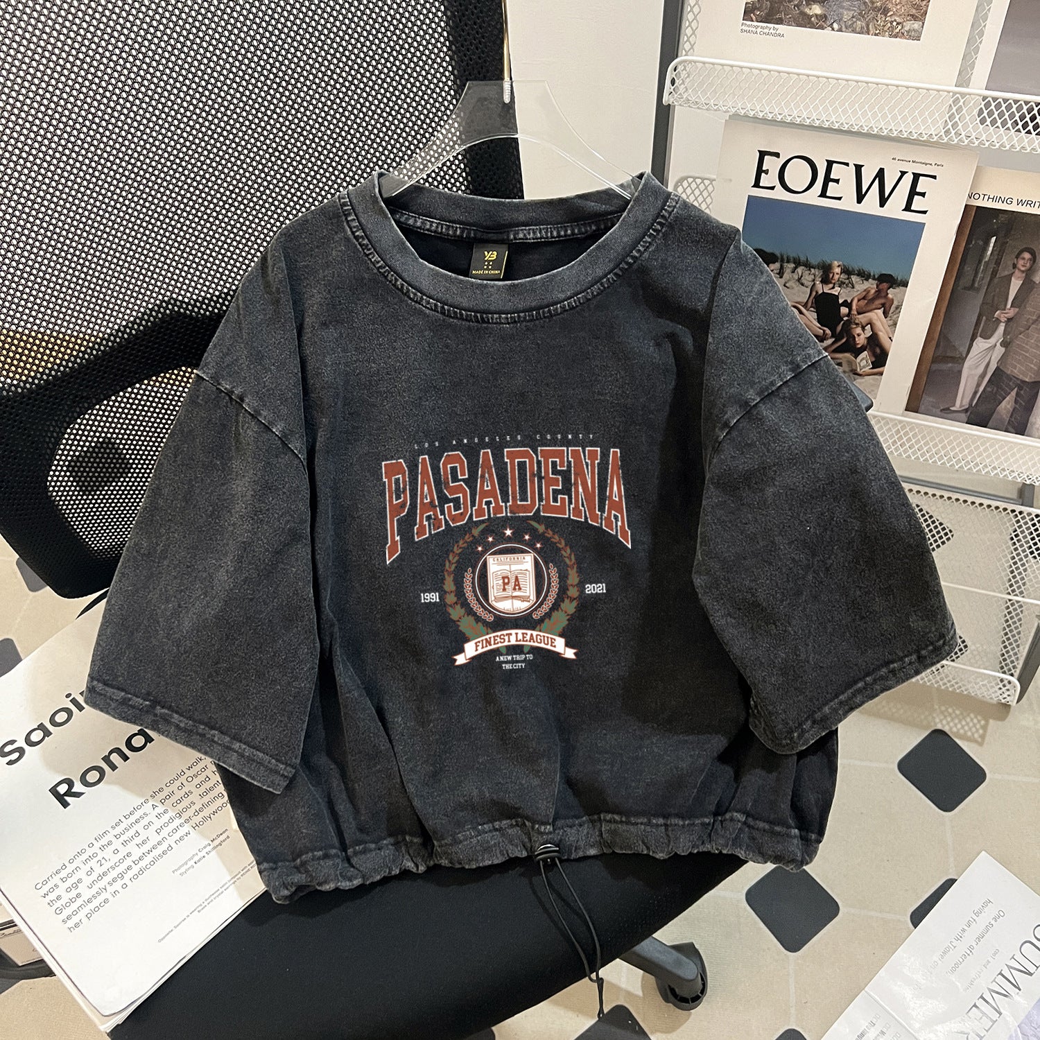 A Distressed Vibe Top é a camiseta que já nasce com a história de uma peça amada. Feita de algodão puro, ela traz a maciez e a leveza que você precisa, com um visual lavado e desgastado que lhe confere um charme vintage e autêntico. O corte solto e cropped é perfeito para um look descontraído, enquanto o cordão ajustável na barra permite que você personalize a modelagem, criando o caimento ideal para a sua vibe.